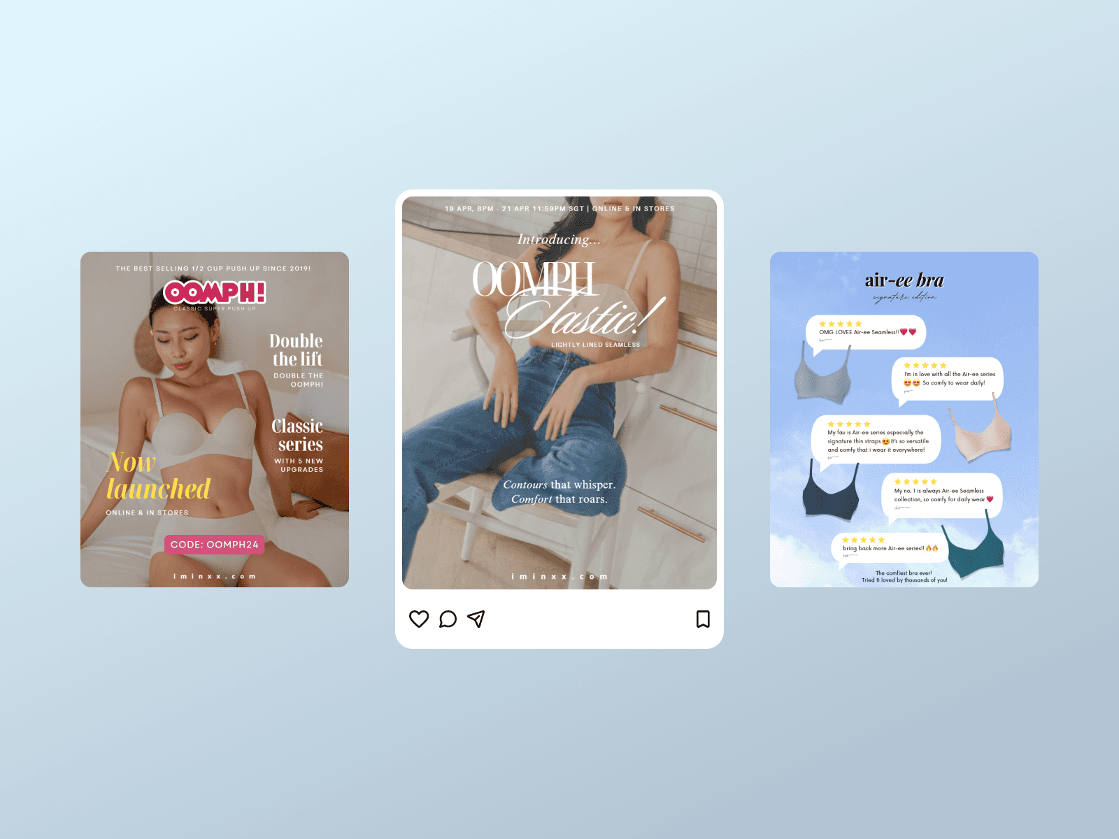 I'M IN is a bold Singaporean lingerie brand that champions confidence, femininity, and self-expression. With its playful, cheeky branding and effortlessly stylish designs, it empowers modern women to embrace comfort and personality in their everyday wear. As Creative Executive, I shaped the brand’s visual identity by designing engaging social content, dynamic marketing campaigns, and striking packaging. From trendy Instagram graphics to sleek product merchandising, my work blended strategic storytelling with eye-catching aesthetics, turning intimate apparel into a celebration of fearless self-love.